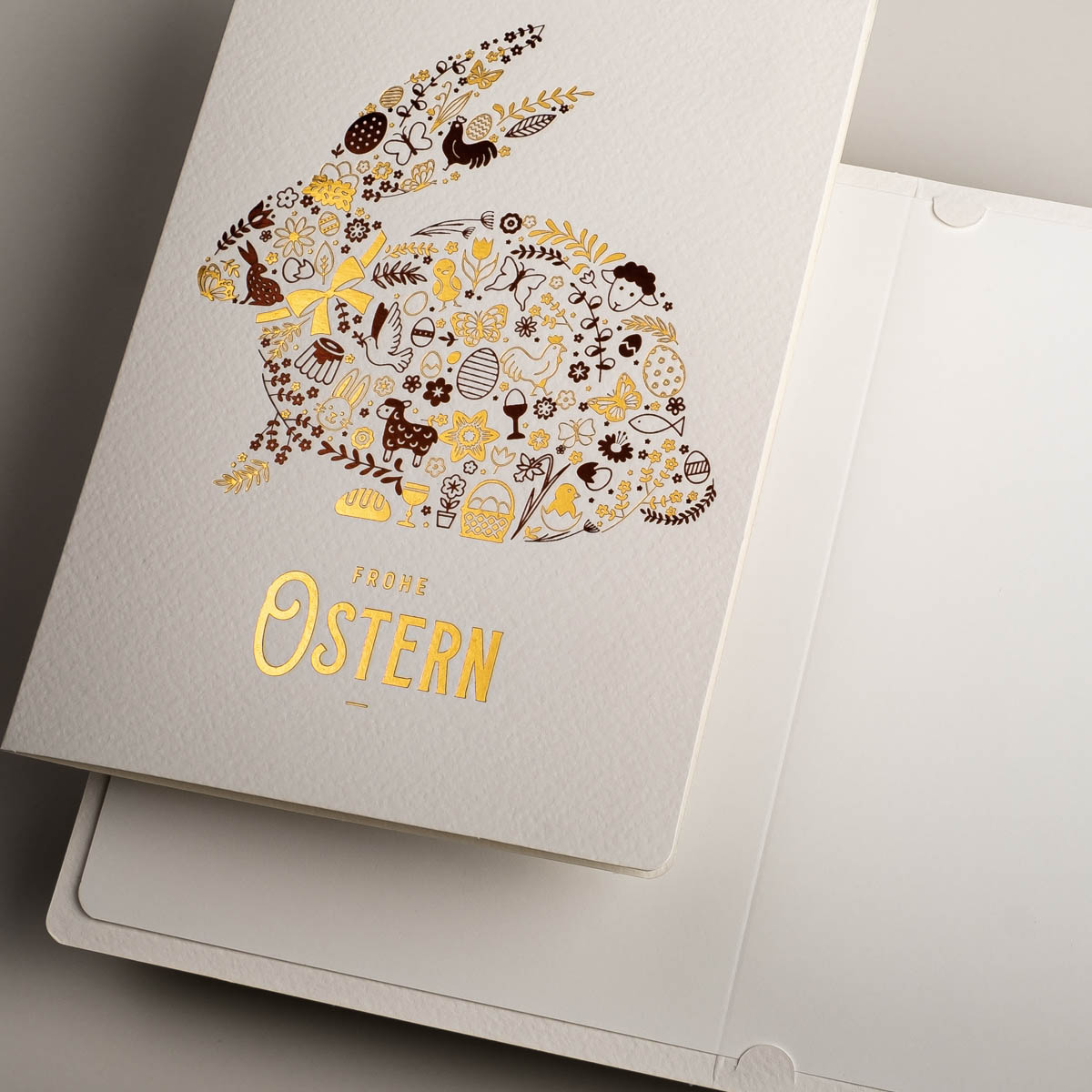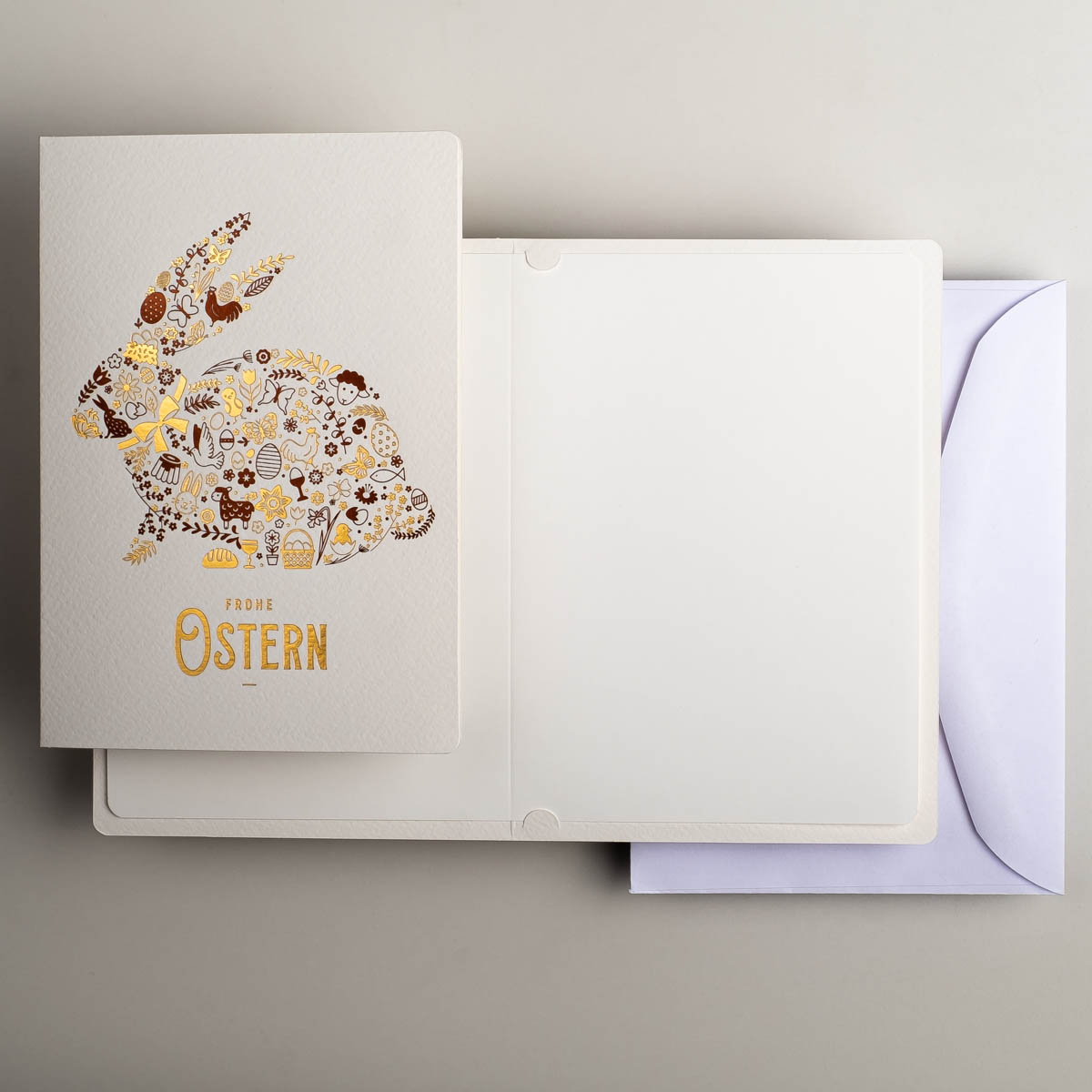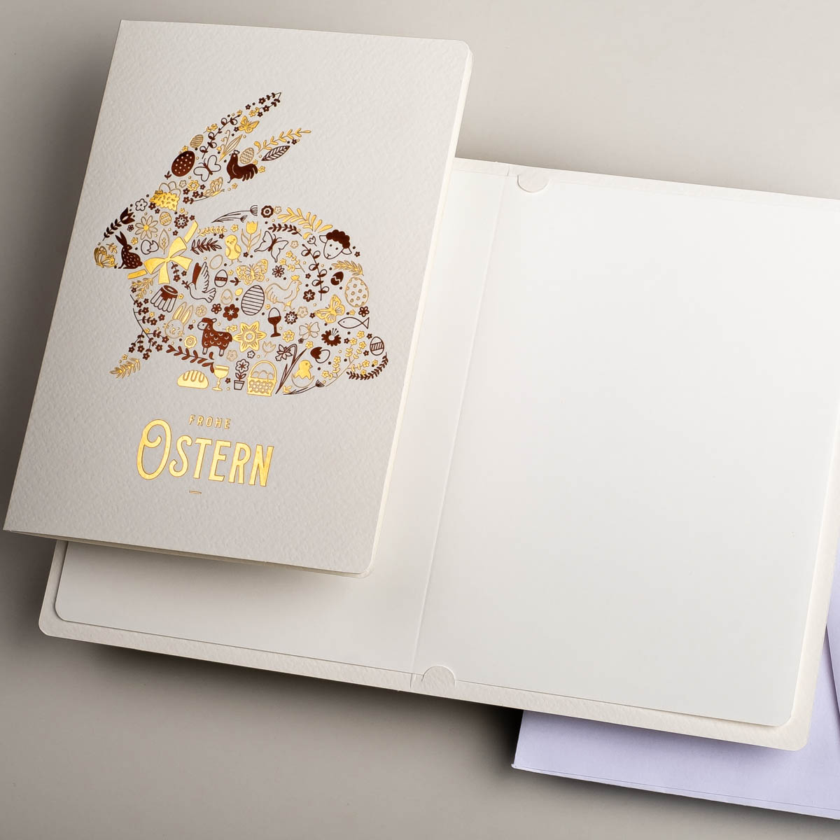 Osterkarten EE-0101-DE, Hergestellt in Polen, Exklusiv Osterkarten, Veredelung: Goldfolie, OSTERKARTEN MIT UMSCHLÄGEN, Kartensätze ohne Aufdruck