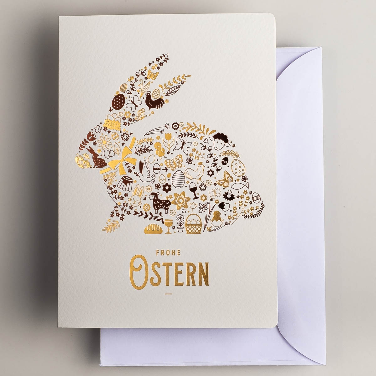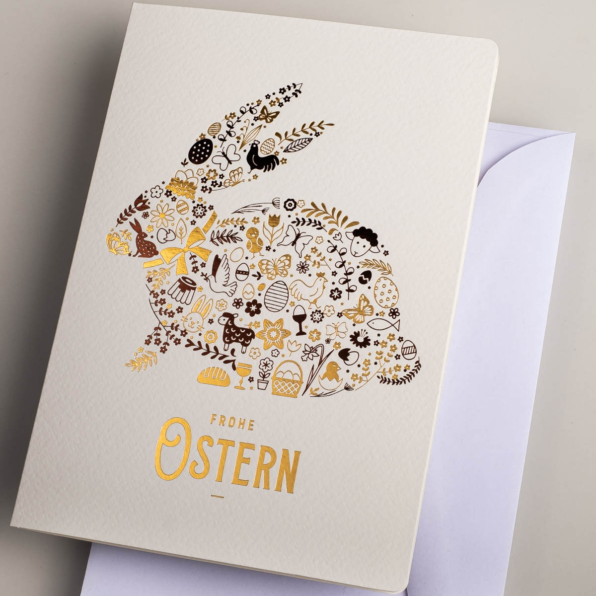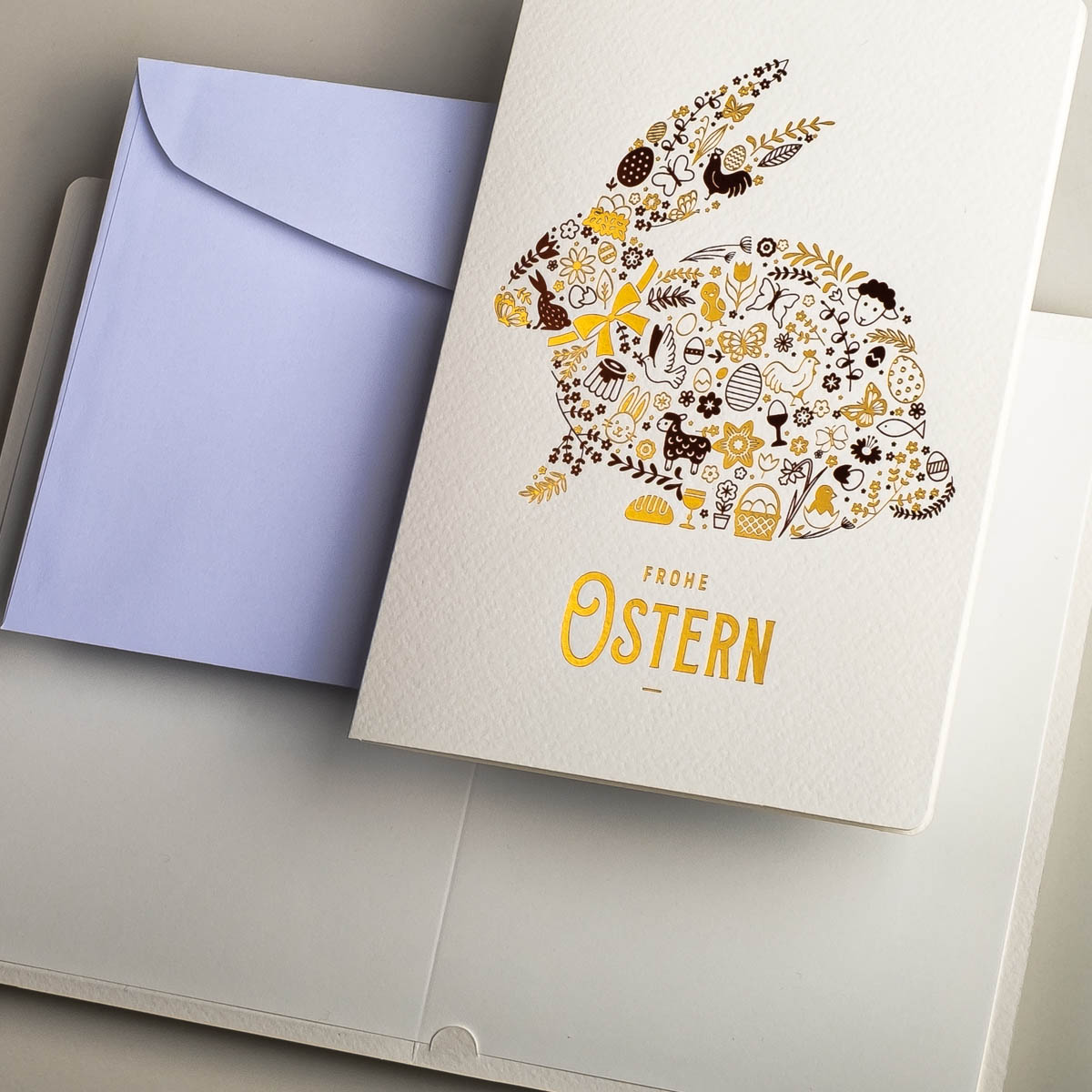 Osterkarten EE-0101-DE, Hergestellt in Polen, Exklusiv Osterkarten, Veredelung: Goldfolie, OSTERKARTEN MIT UMSCHLÄGEN, Kartensätze ohne Aufdruck