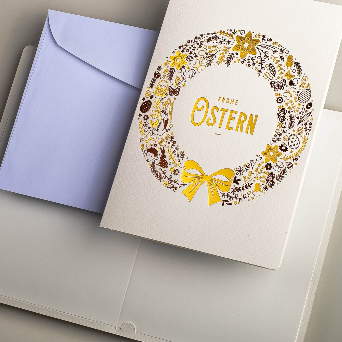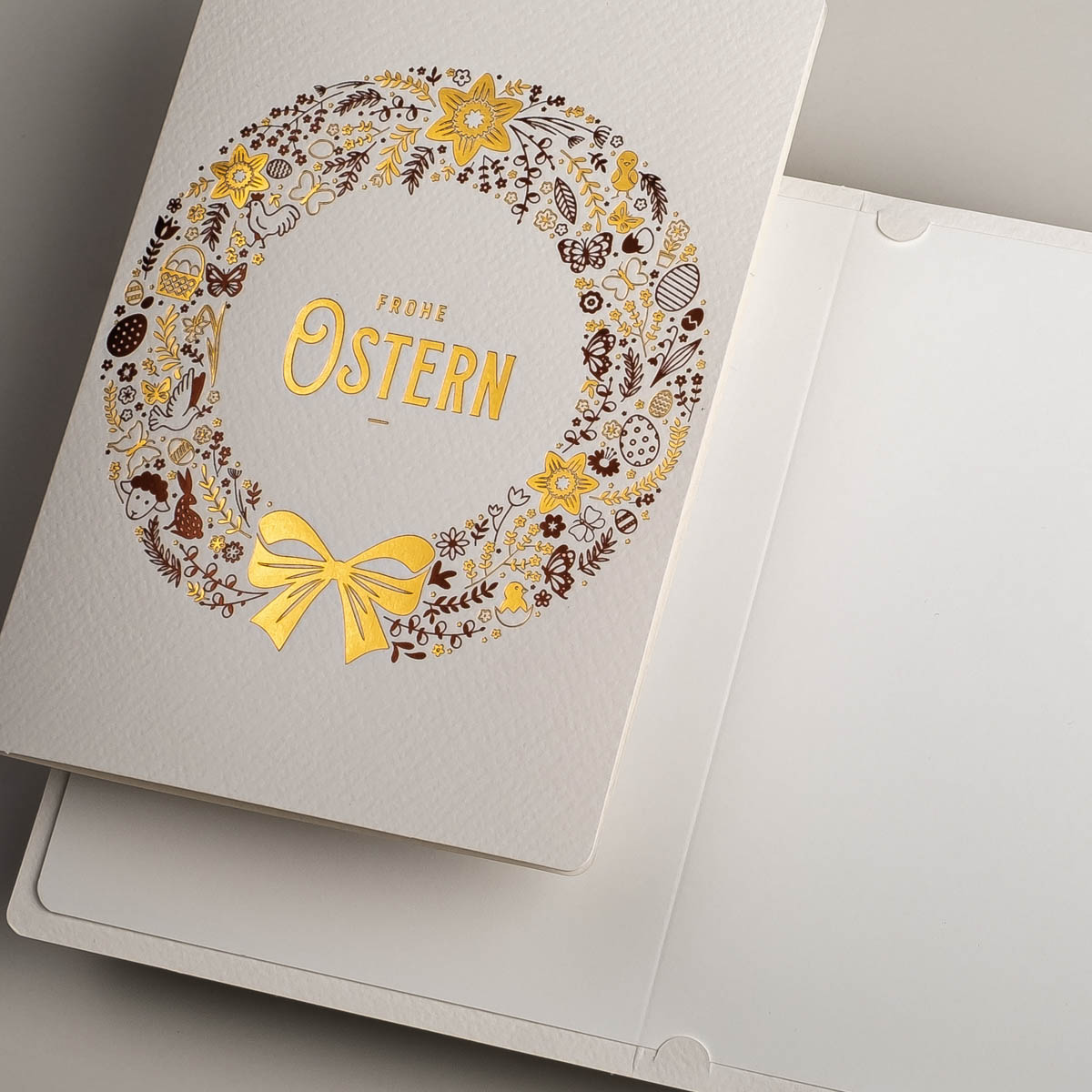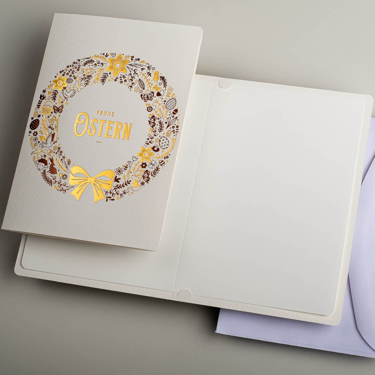 Osterkarten EE-0102-DE, Hergestellt in Polen, Exklusiv Osterkarten, Veredelung: Goldfolie, OSTERKARTEN MIT UMSCHLÄGEN, Kartensätze ohne Aufdruck