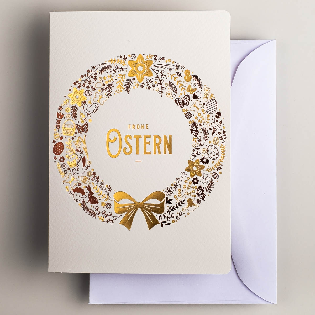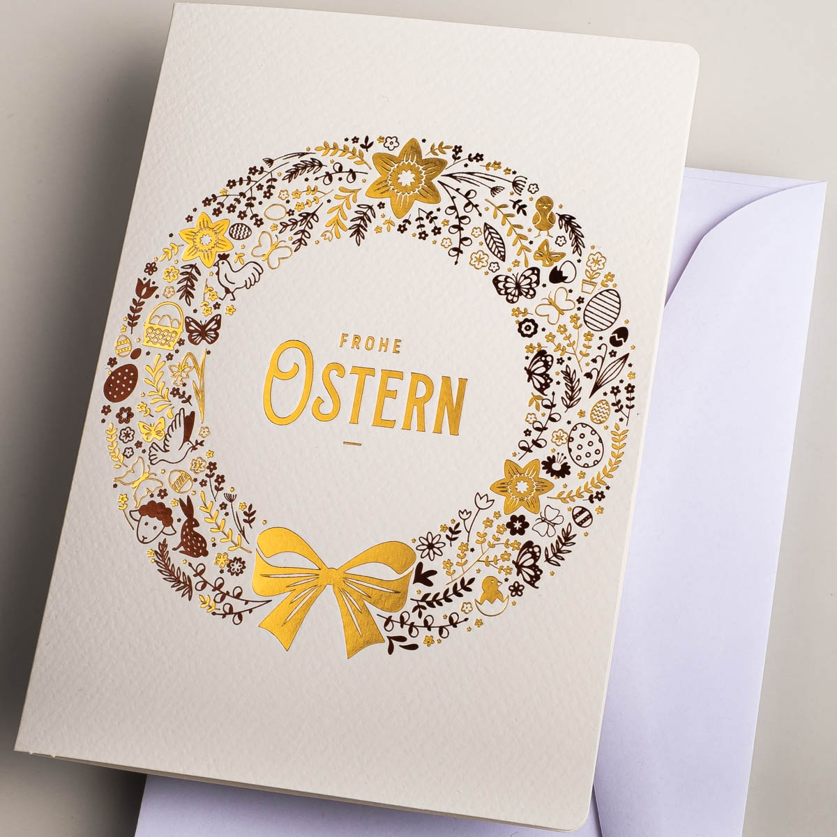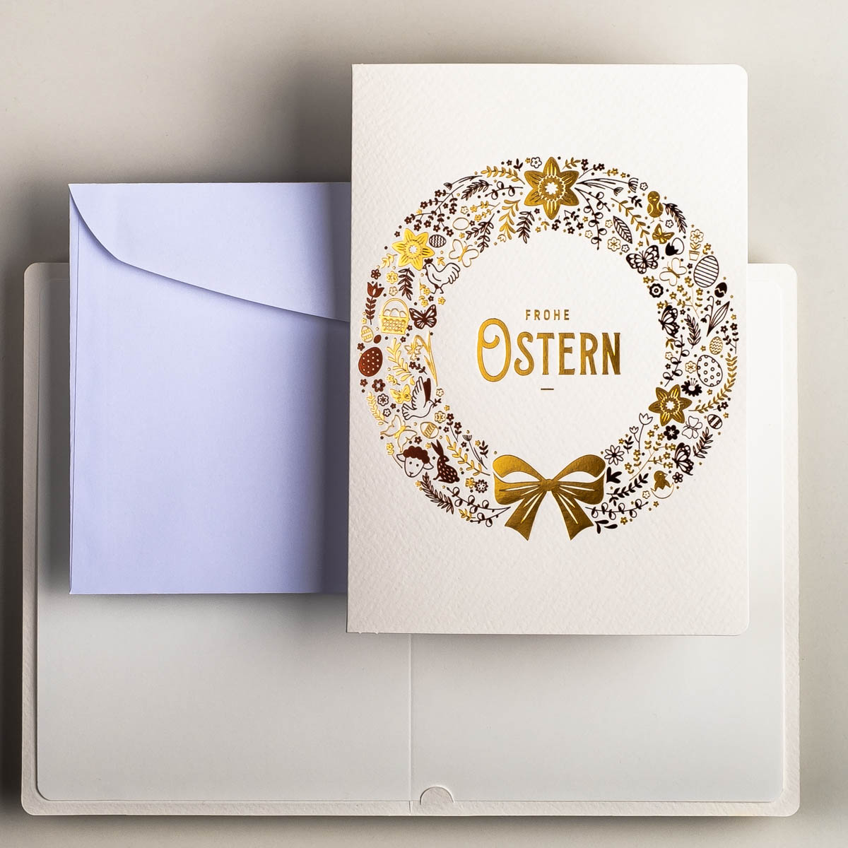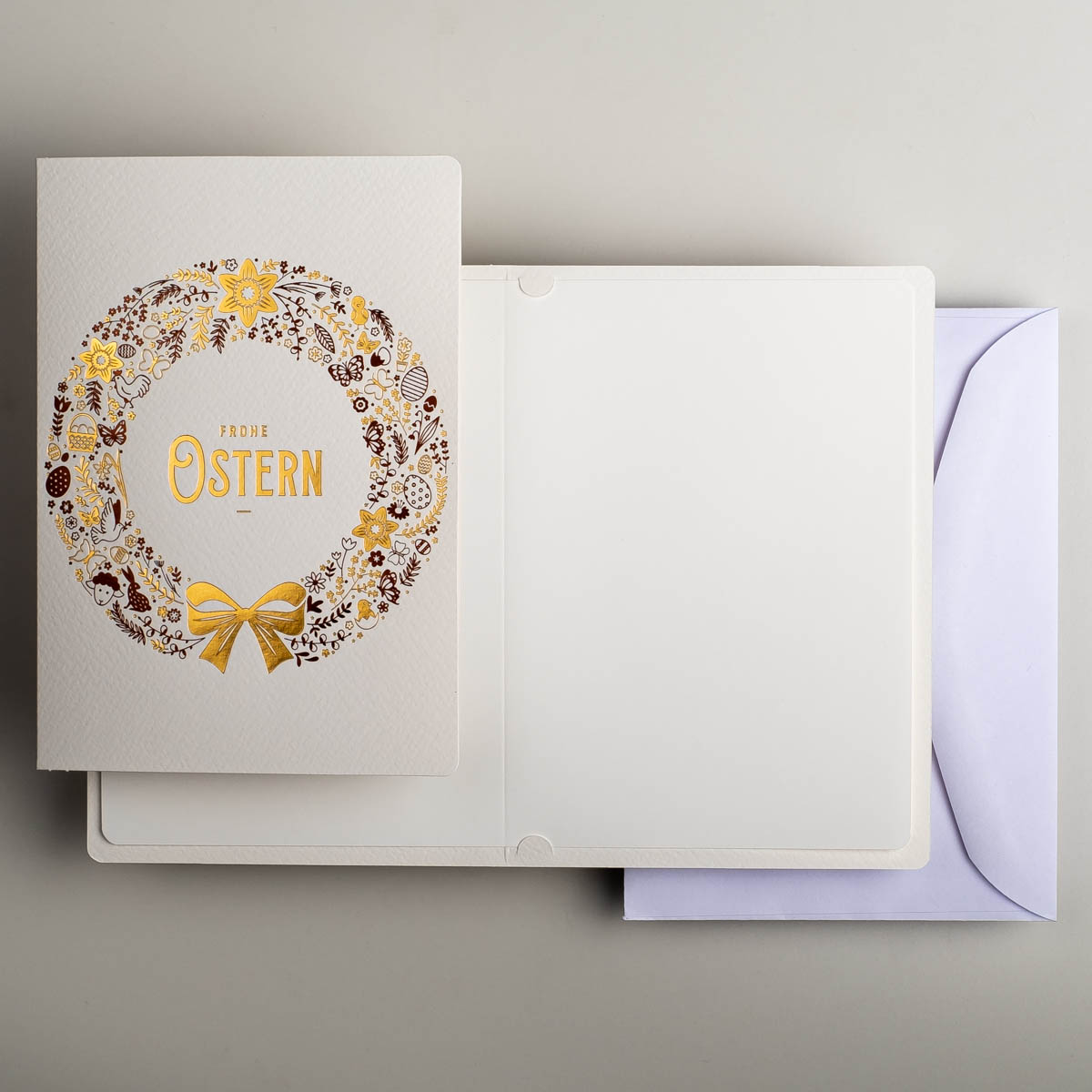 Osterkarten EE-0102-DE, Hergestellt in Polen, Exklusiv Osterkarten, Veredelung: Goldfolie, OSTERKARTEN MIT UMSCHLÄGEN, Kartensätze ohne Aufdruck