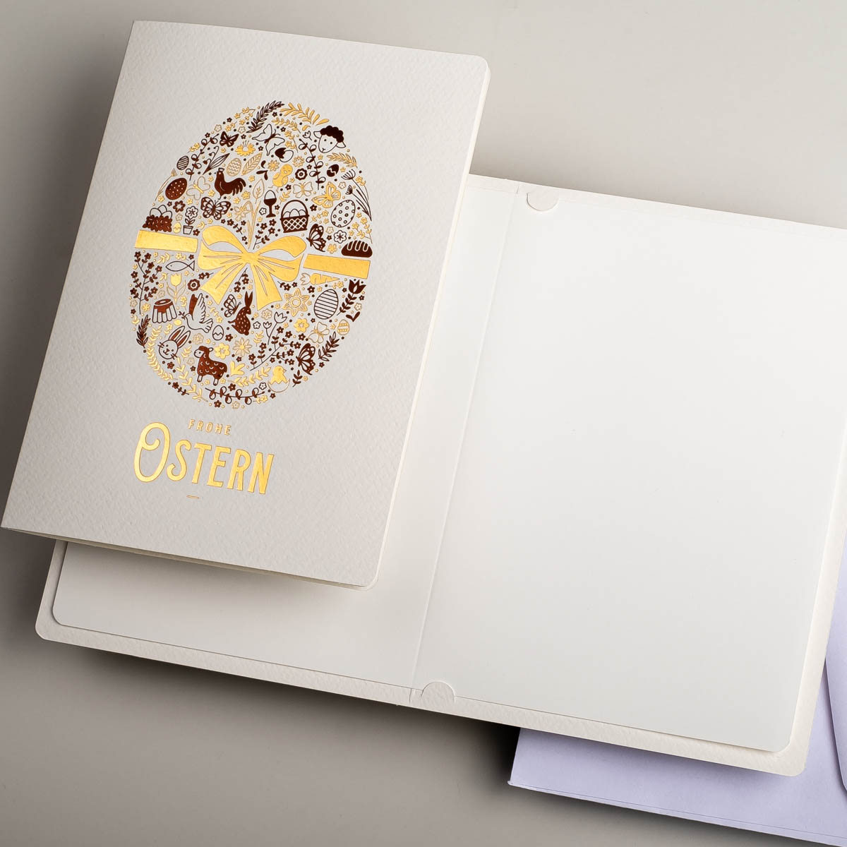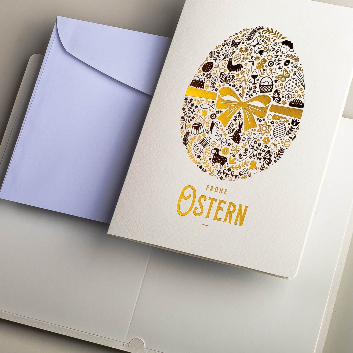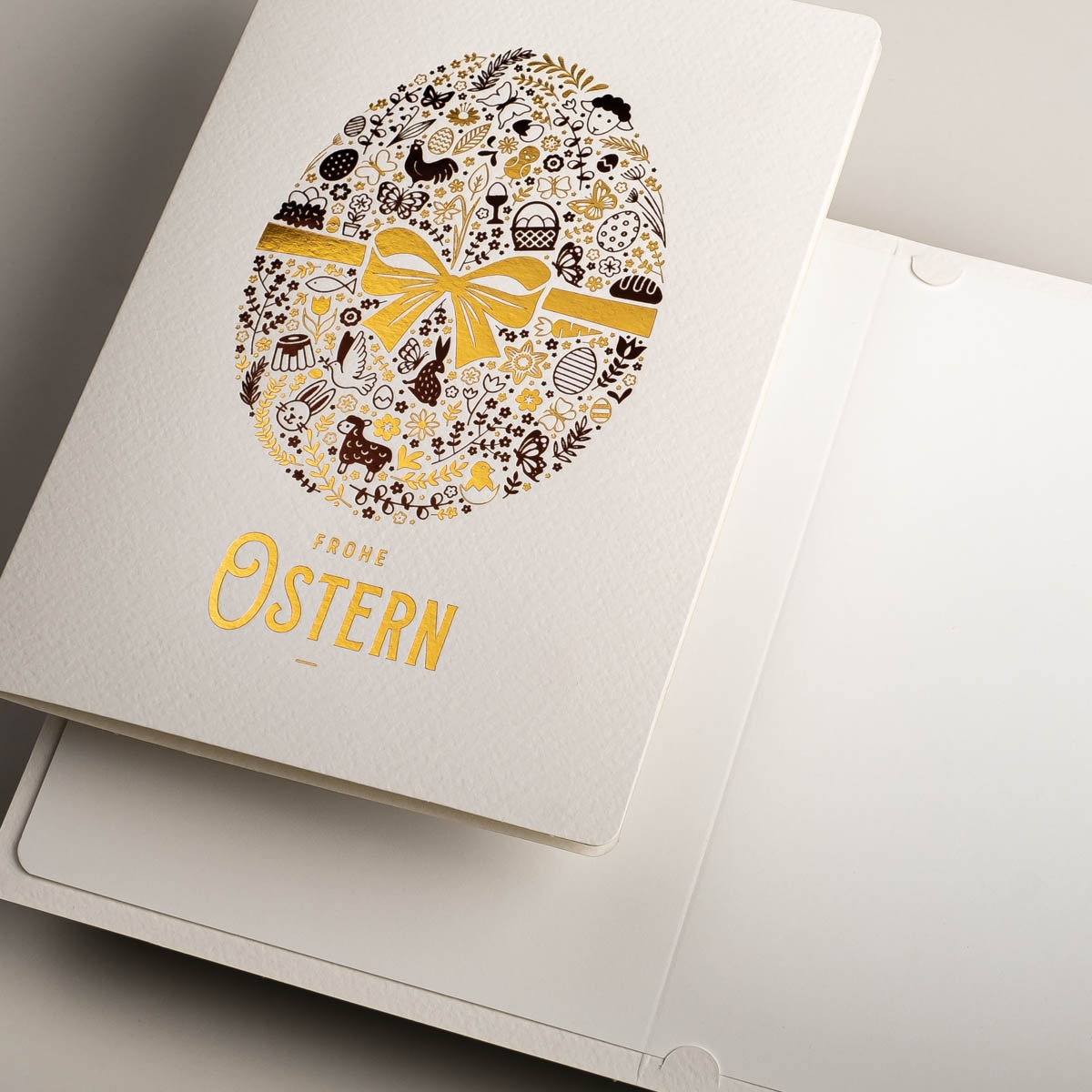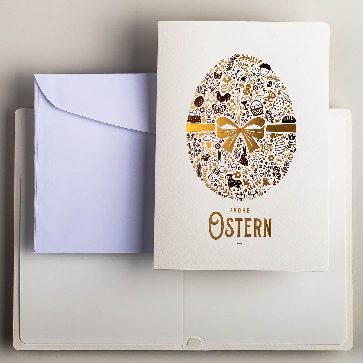 Osterkarten EE-0103-DE, Hergestellt in Polen, Exklusiv Osterkarten, Veredelung: Goldfolie, OSTERKARTEN MIT UMSCHLÄGEN, Kartensätze ohne Aufdruck