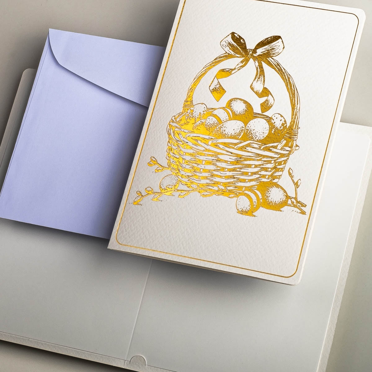 Osterkarten EE-0104-DE, Hergestellt in Polen, Exklusiv Osterkarten, Veredelung: Goldfolie, OSTERKARTEN MIT UMSCHLÄGEN, Kartensätze ohne Aufdruck