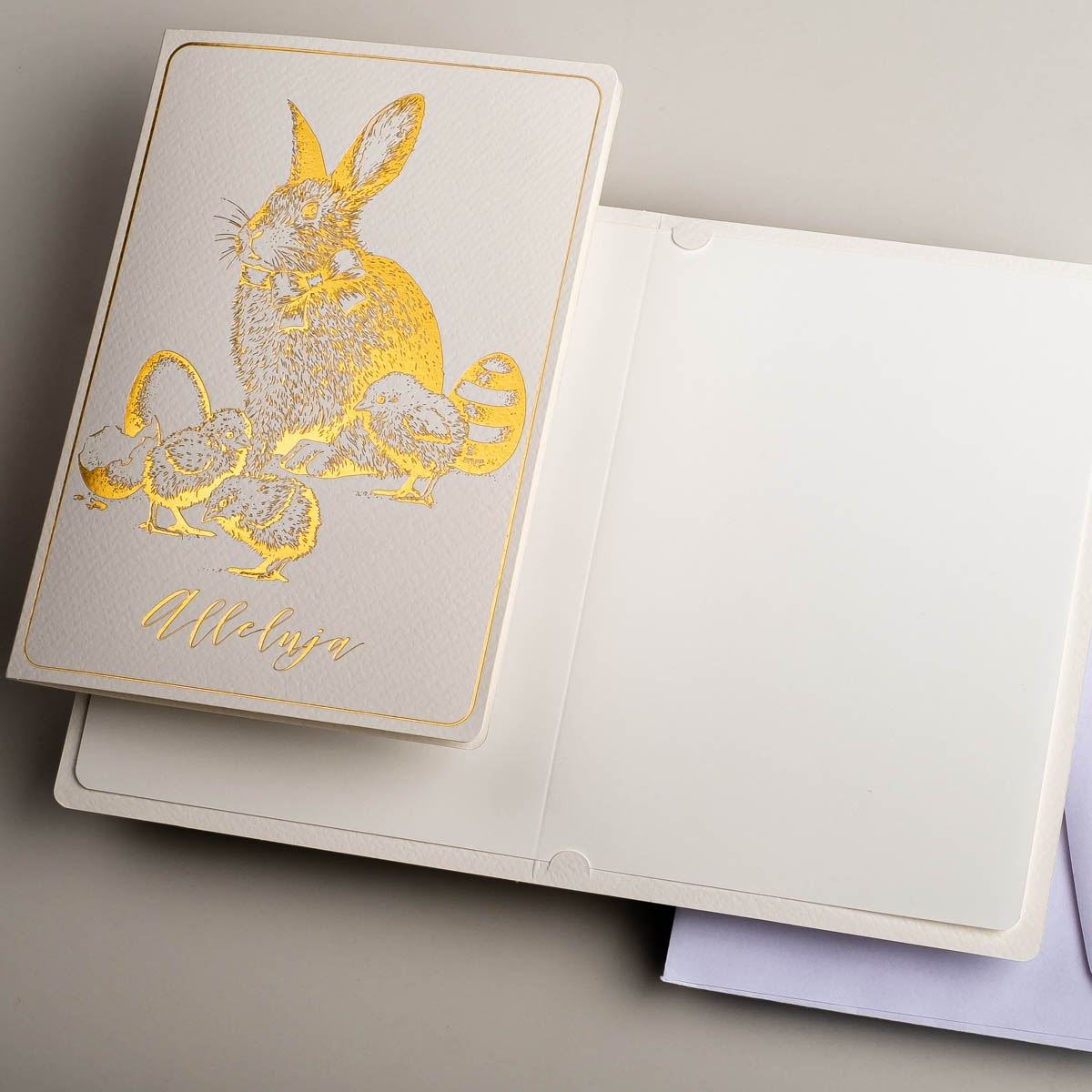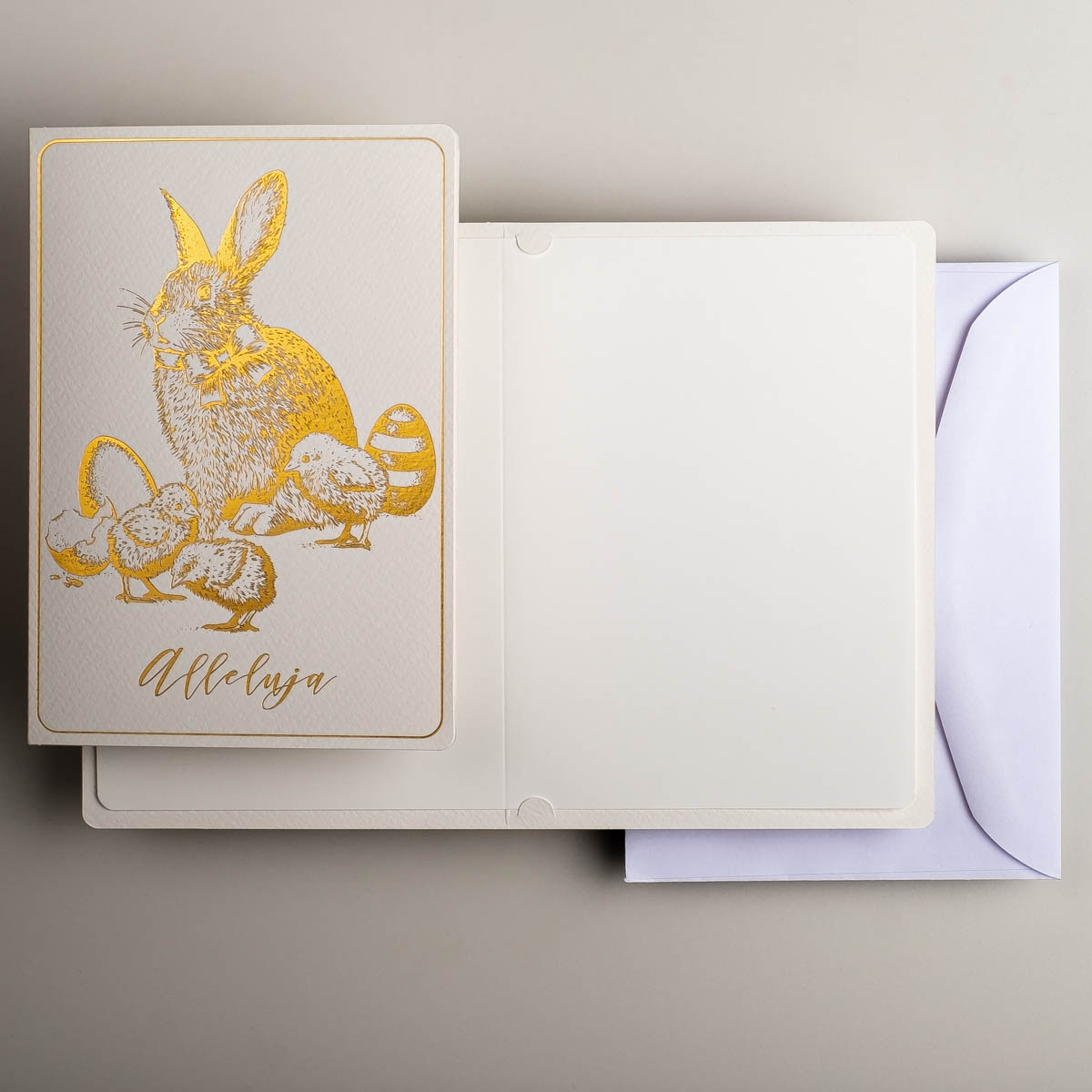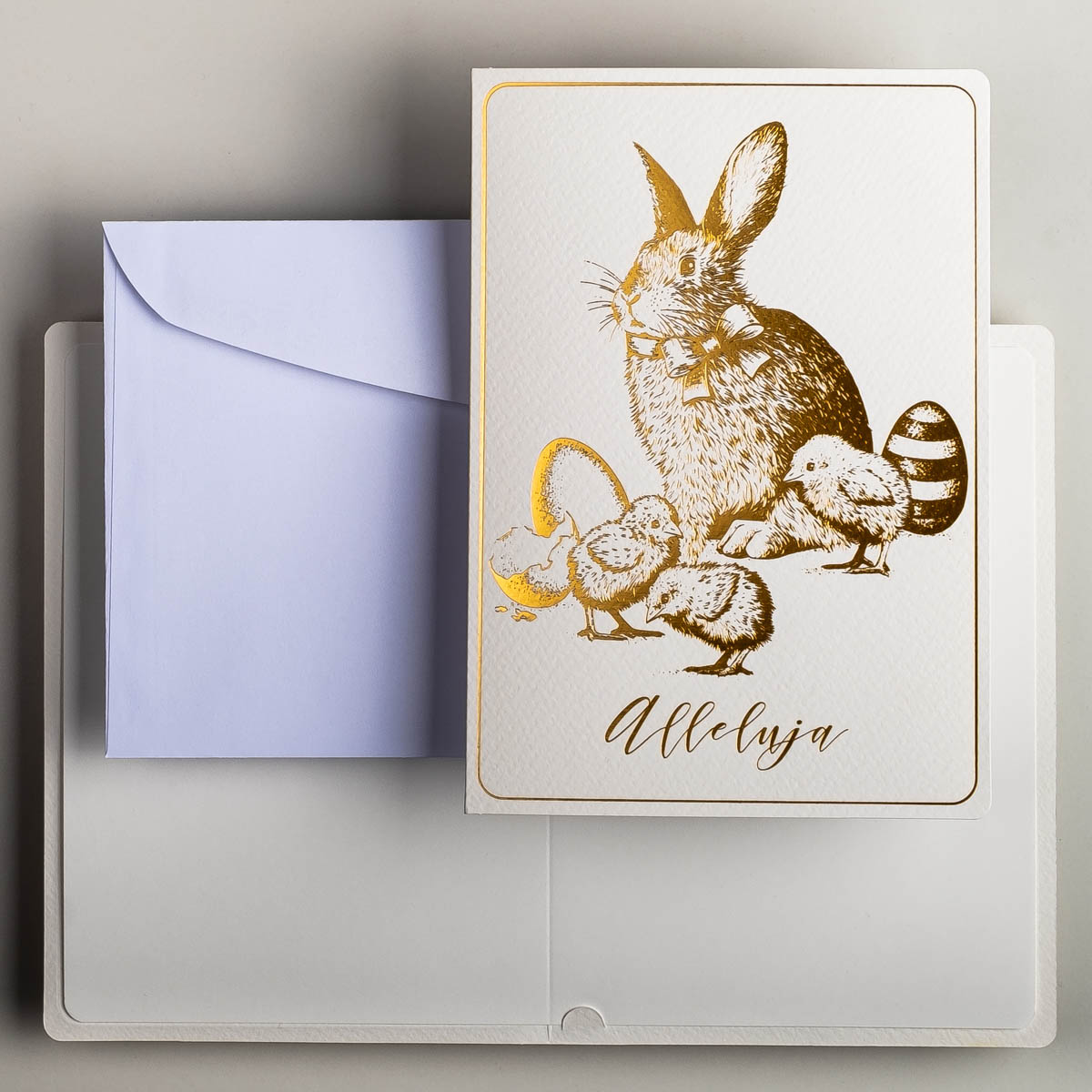 Osterkarten EE-0105-DE, Hergestellt in Polen, Exklusiv Osterkarten, Veredelung: Goldfolie, OSTERKARTEN MIT UMSCHLÄGEN, Kartensätze ohne Aufdruck