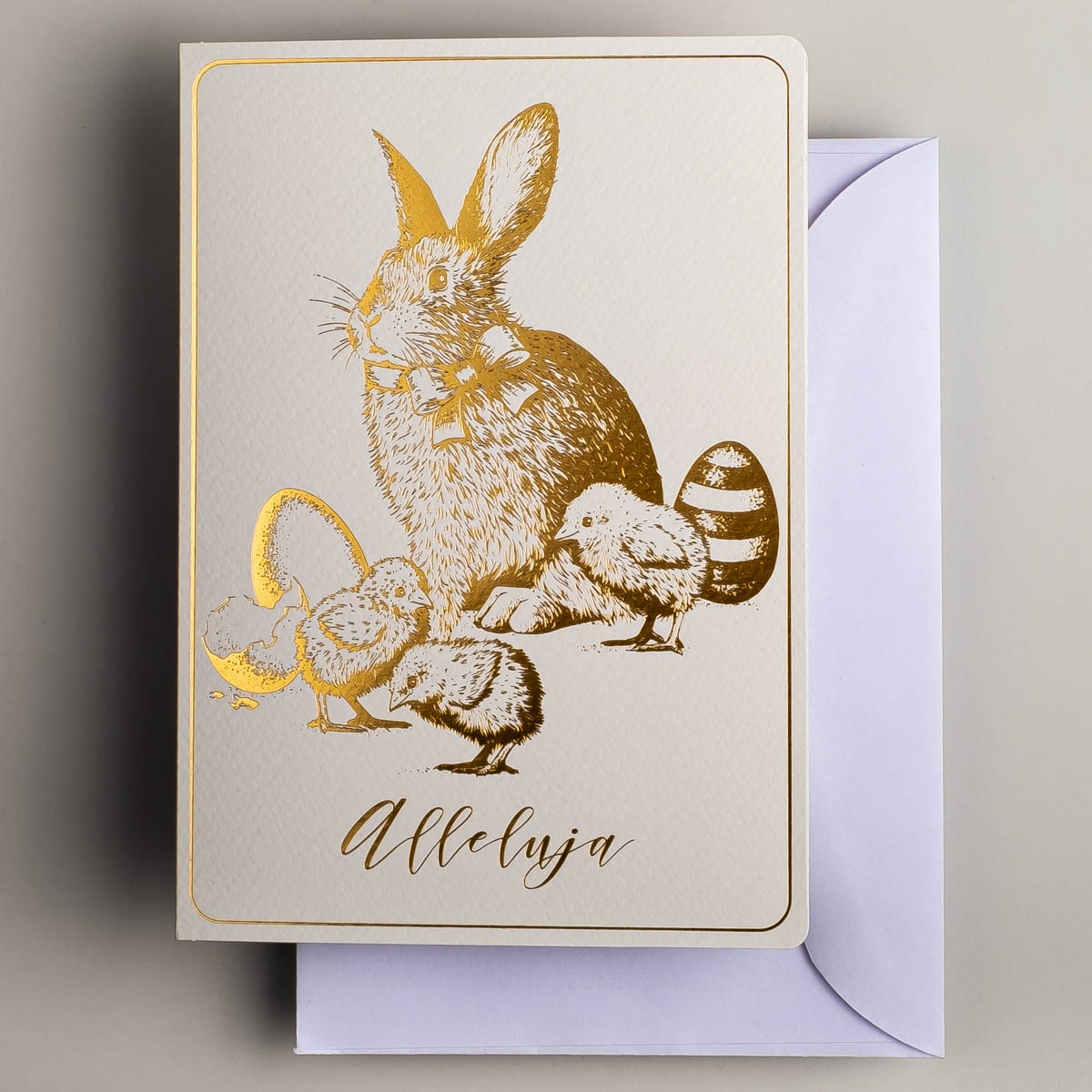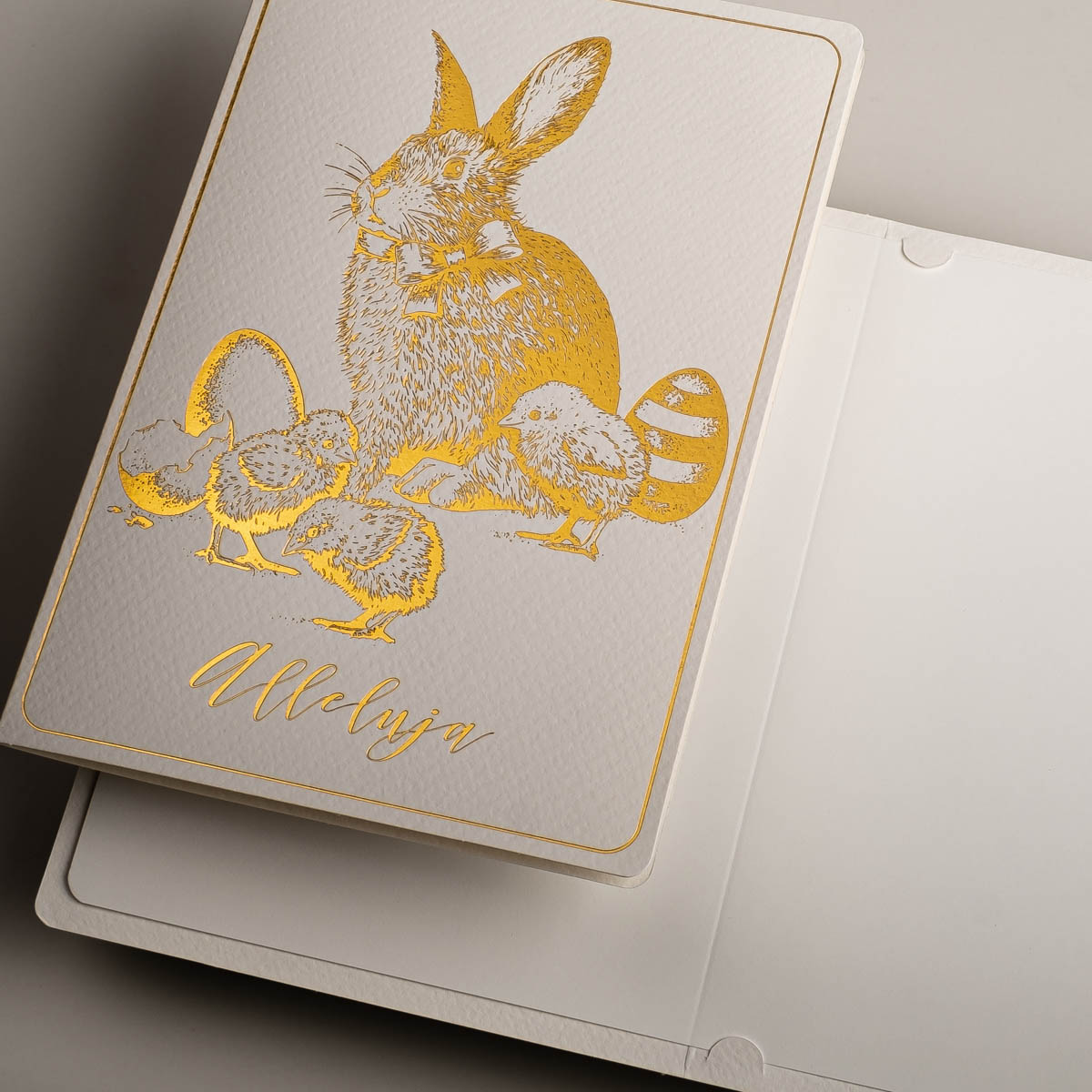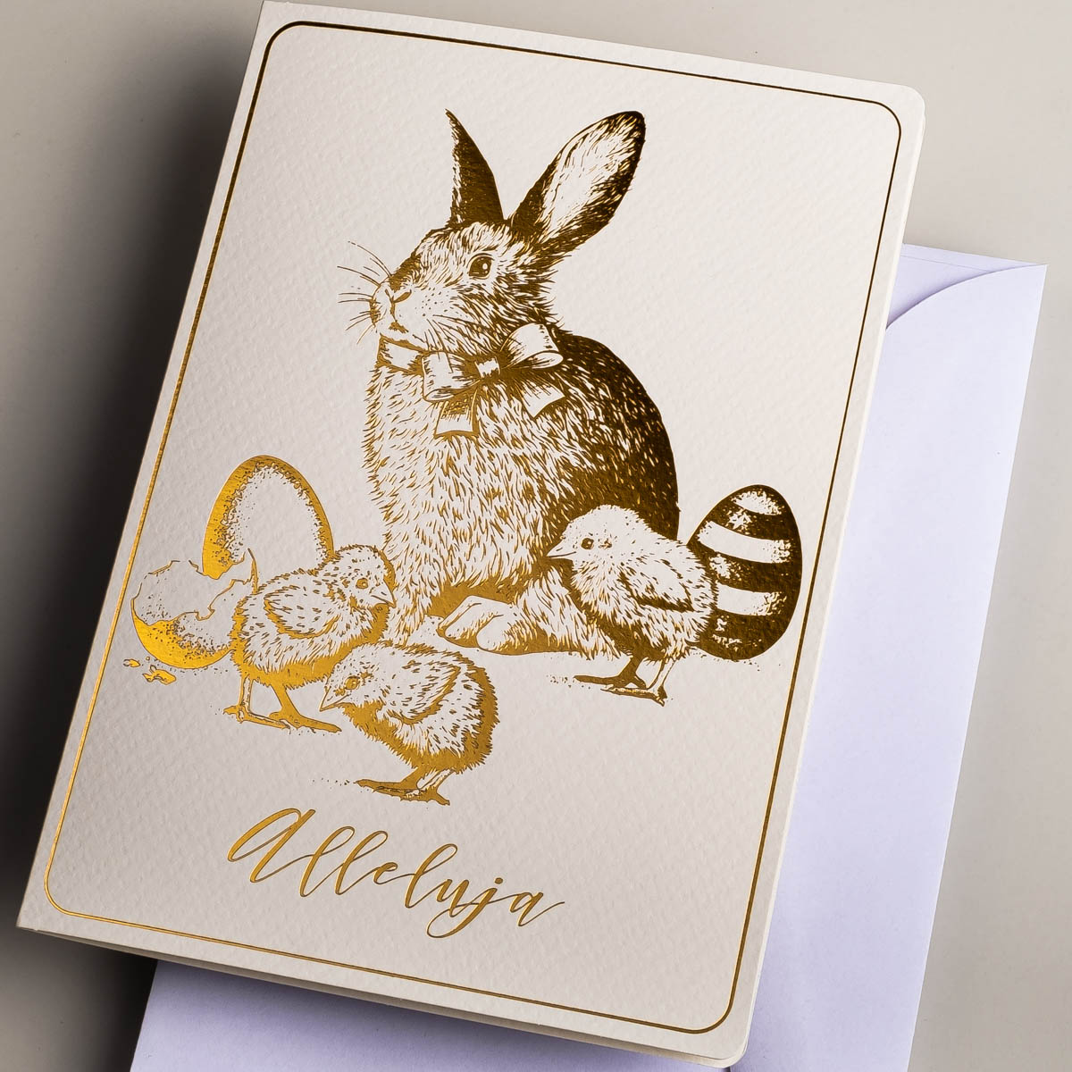 Osterkarten EE-0105-DE, Hergestellt in Polen, Exklusiv Osterkarten, Veredelung: Goldfolie, OSTERKARTEN MIT UMSCHLÄGEN, Kartensätze ohne Aufdruck