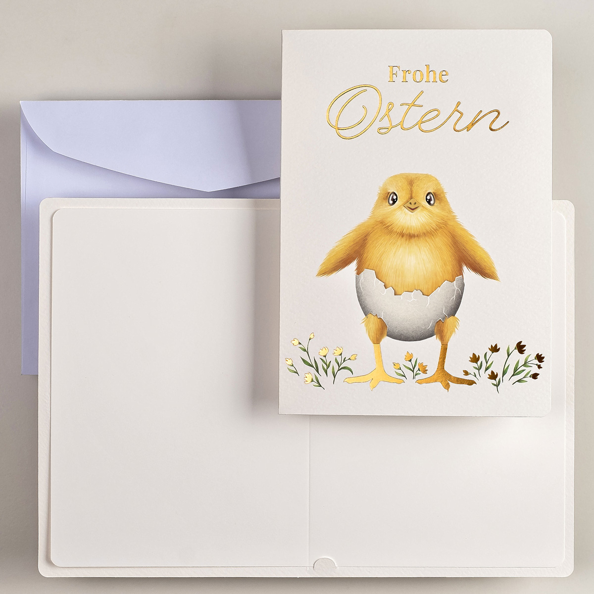 Osterkarten EE-0514-DE, Hergestellt in EU, Exklusiv Osterkarten, Veredelung: Goldfolie, OSTERKARTEN MIT UMSCHLÄGEN, Kartensätze ohne Aufdruck