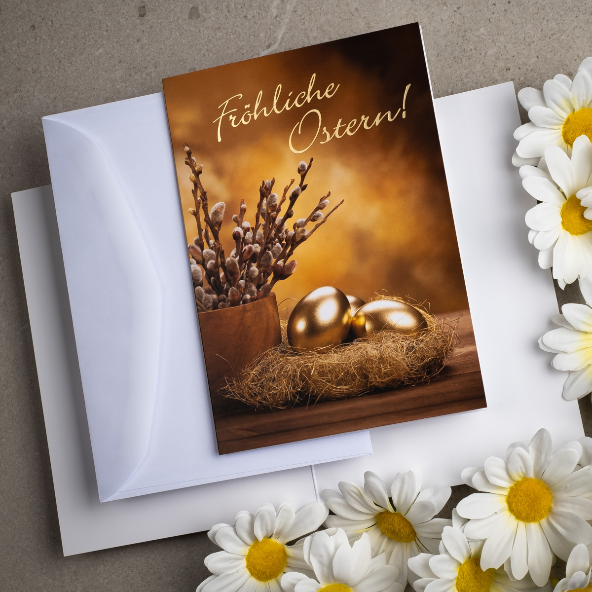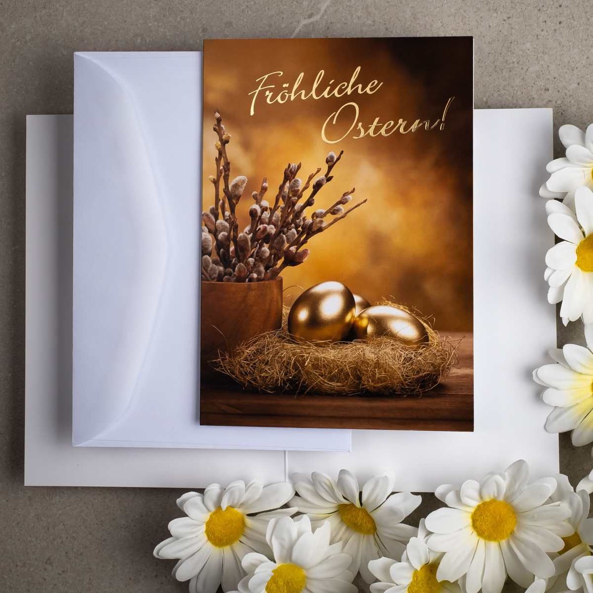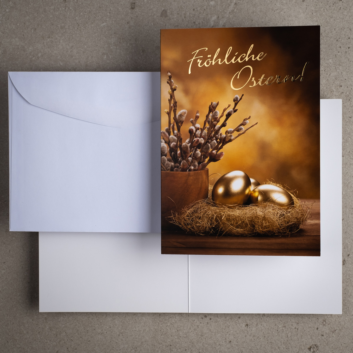 Osterkarten EE-101, Hergestellt in Polen, Foto-Osterpostkarten, Veredelung: Goldfolie, OSTERKARTEN MIT UMSCHLÄGEN, Kartensätze ohne Aufdruck