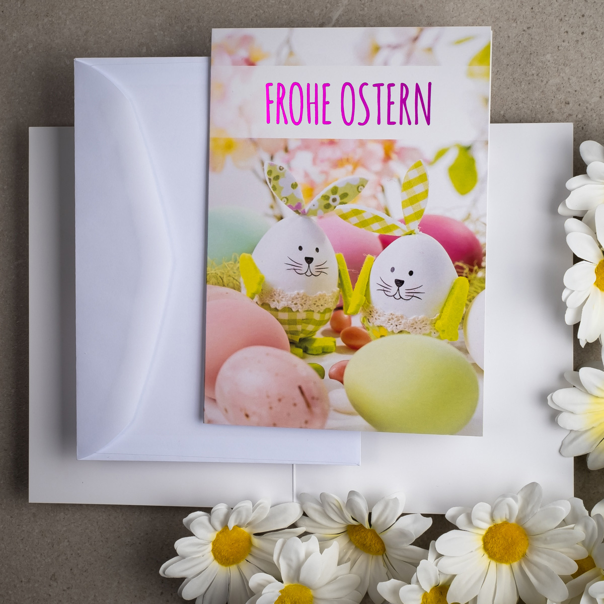 Osterkarten EE-104, Hergestellt in Polen, Foto-Osterpostkarten, Veredelung: einseitiger Offsetdruck, OSTERKARTEN MIT UMSCHLÄGEN, Kartensätze ohne Aufdruck