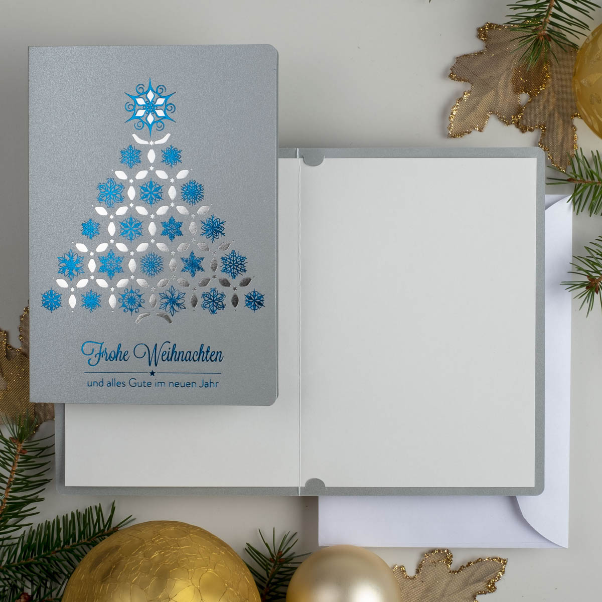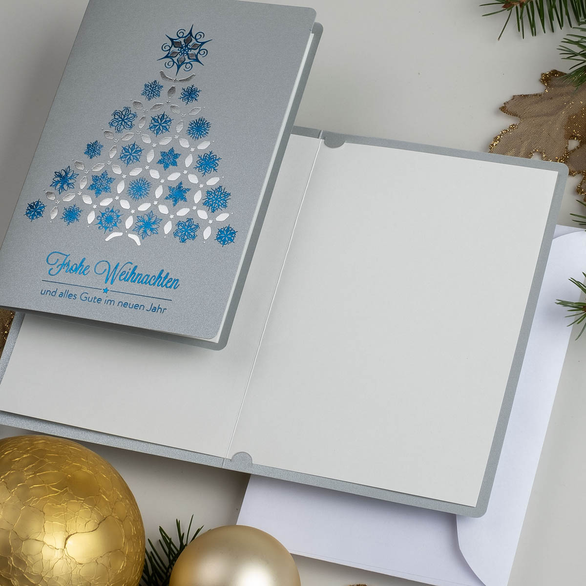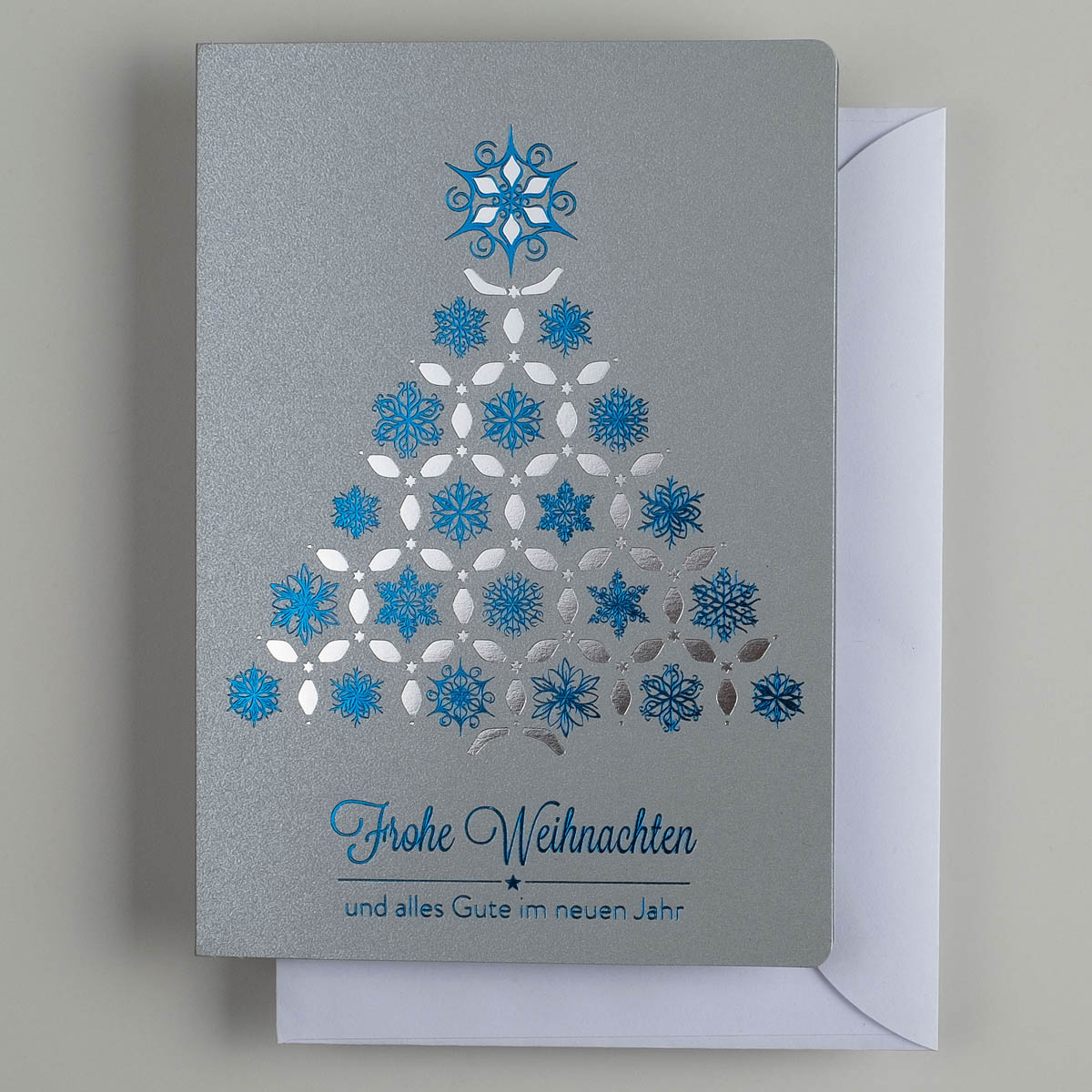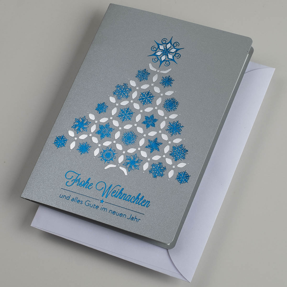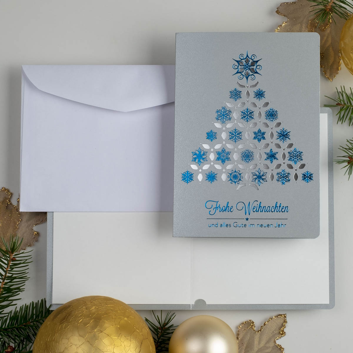 Weihnachtskarten ACH-007, In Polen hergestellte Weihnachtskarte, Exklusiv Karten, Veredelung: Blau- und Silberfolie