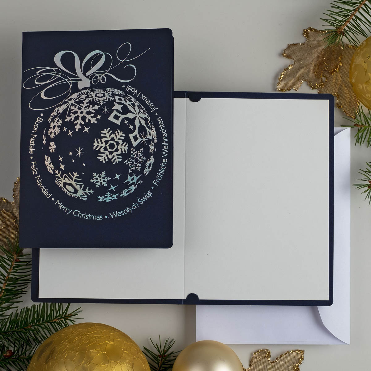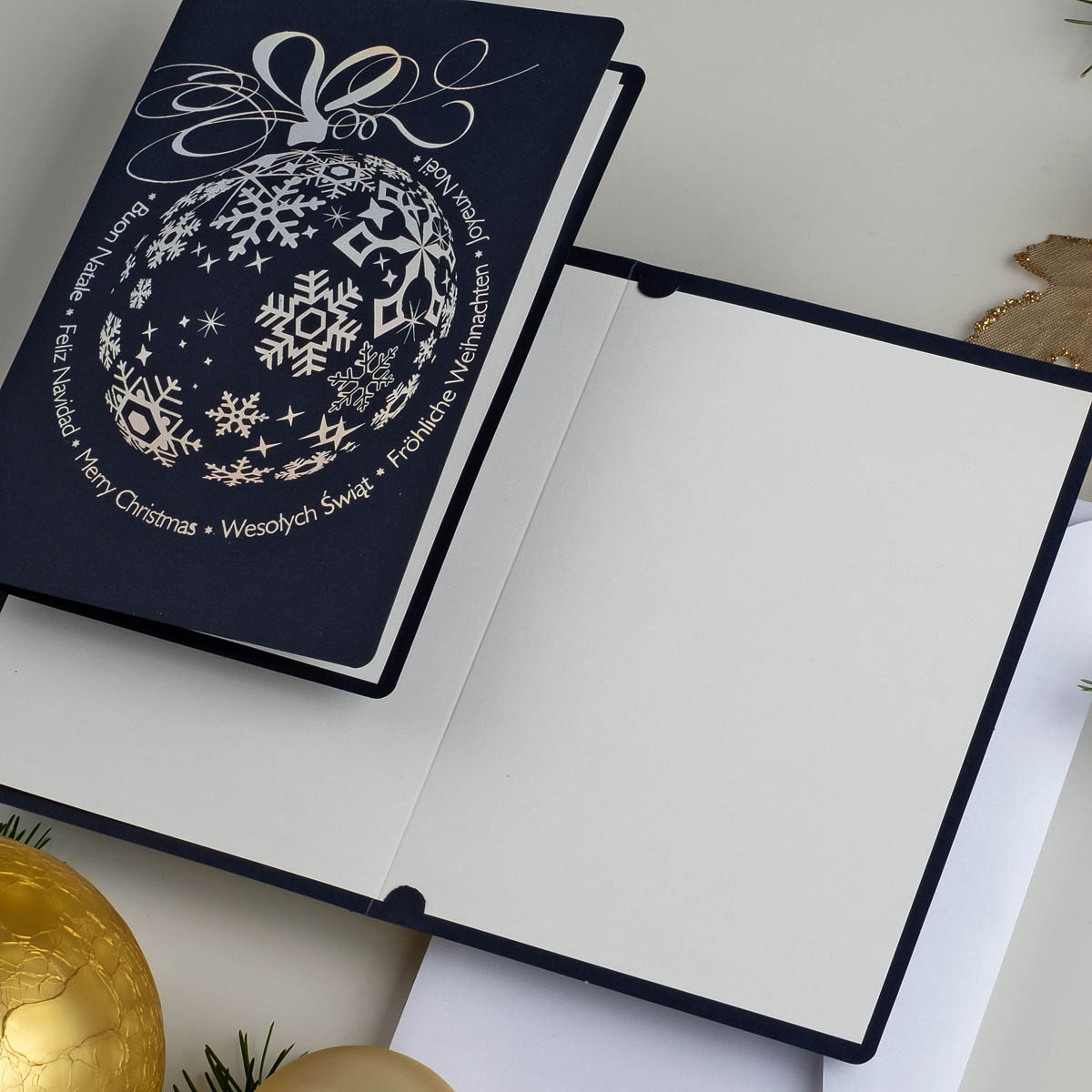 Weihnachtskarten ACH-011, In Polen hergestellte Weihnachtskarte, Exklusiv Weihnachtskarten, Veredelung: Goldfolie, Exklusiv Weihnachtskarten für Firmen