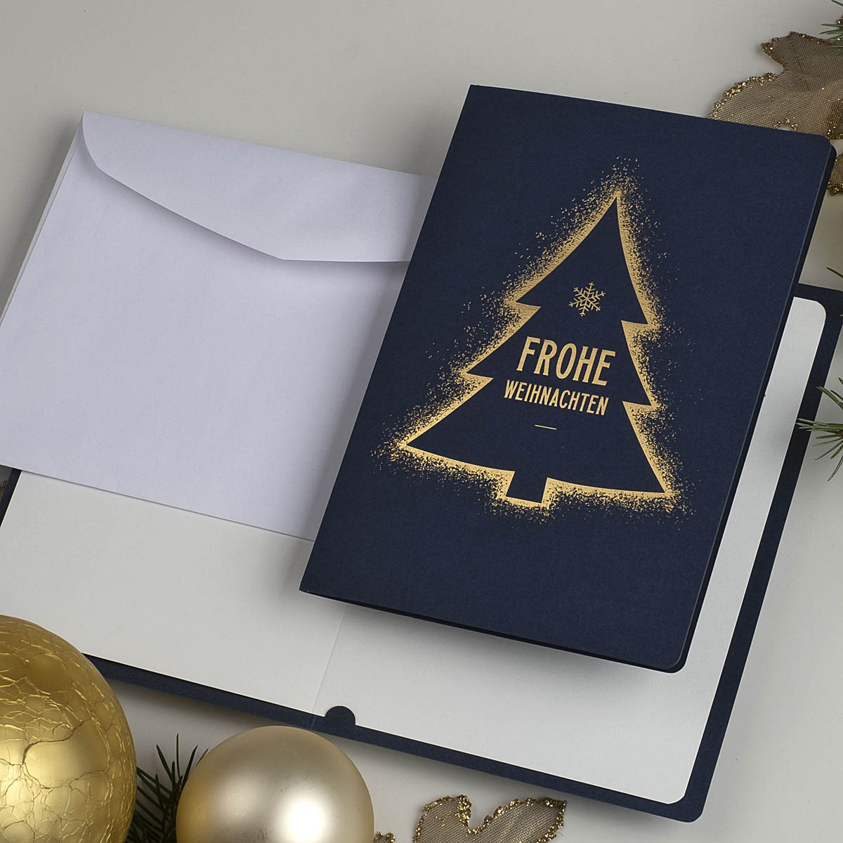 LOGO UND WÜNSCHE – Sie können auf der Karte Ihr Firmenlogo in folgenden Techniken drucken lassen: Heißveredelung mit Metallfolie, Prägung oder Laserschneiden. Sie können Ihre Wünsche auf der Einlage mit digitalem Vollfarbdruck drucken lassen.